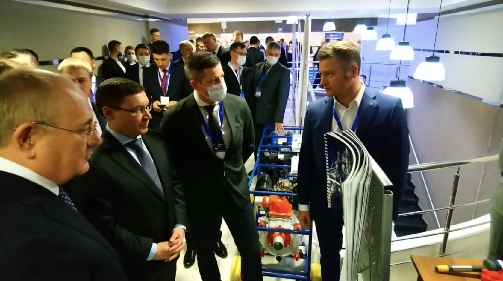 Одной из составляющих частей мероприятия была экспозиция продукции уральских промышленников. Компания «Нефть-Сервис» представила макеты производимого ею оборудования для заказчиков нефтегазового сектора. Среди них были универсальный гидравлический ключ КТ-9625 «Богатырь», гидравлический ключ КМА-1625 «Русич» для проведения работ с обсадными трубами, спайдер гидравлический СП-6500, компонент телеметрической системы «Атлас», а также инструмент CRT для управляемого спуска обсадных колонн. Генеральный директор ООО «Нефть-Сервис» Михаил Камышев лично проинформировал делегацию высокопоставленных гостей о возможностях нашего оборудования и степени локализации производства отдельных компонентов. Кратко была дана информация о производственном комплексе в Миассе, статусе реализации проекта Производственного кластера под эгидой «Фонда развития промышленности», а также намерениях в импортозамещении поставляемой из-за рубежа продукции для нефтесервисных компаний. Члены делегации высоко оценили потенциал развития компании «Нефть-Сервис» в рамках построения локального нефтесервисного кластера и промышленной кооперации с предприятиями региона.